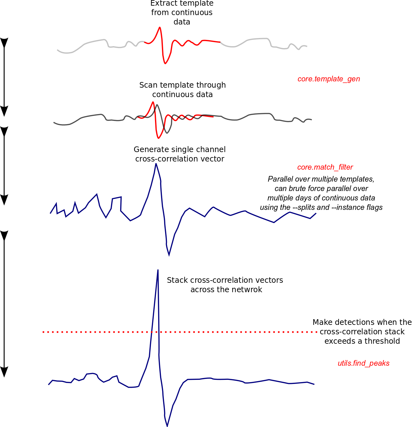 This tutorial will cover using both the match-filter objects, and using the internal functions within match-filter. The match-filter objects are designed to simplify meta-data handling allowing for shorter code with fewer mistakes and therefore more consistent results.